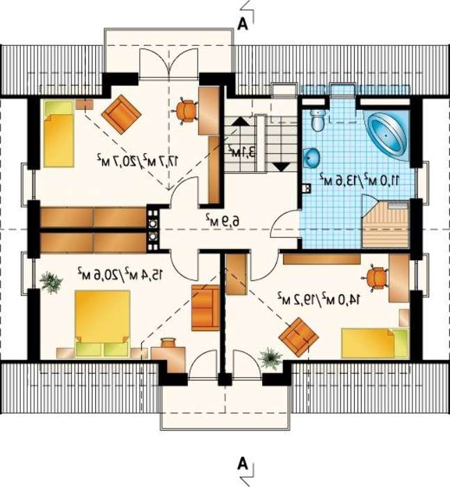 • 4M3289 Строительный проект коттеджа 180 m² с мансардой и гаражом на 1 машину