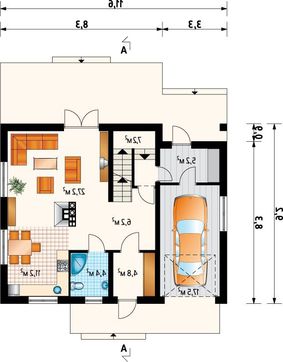 Строительный проект коттеджа 180 m² с мансардой и гаражом на 1 машину