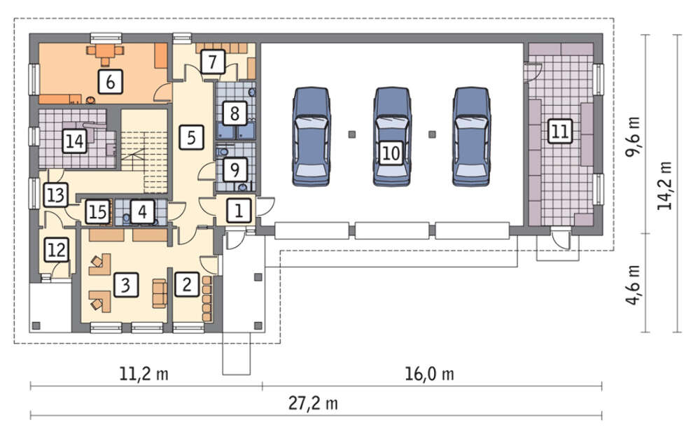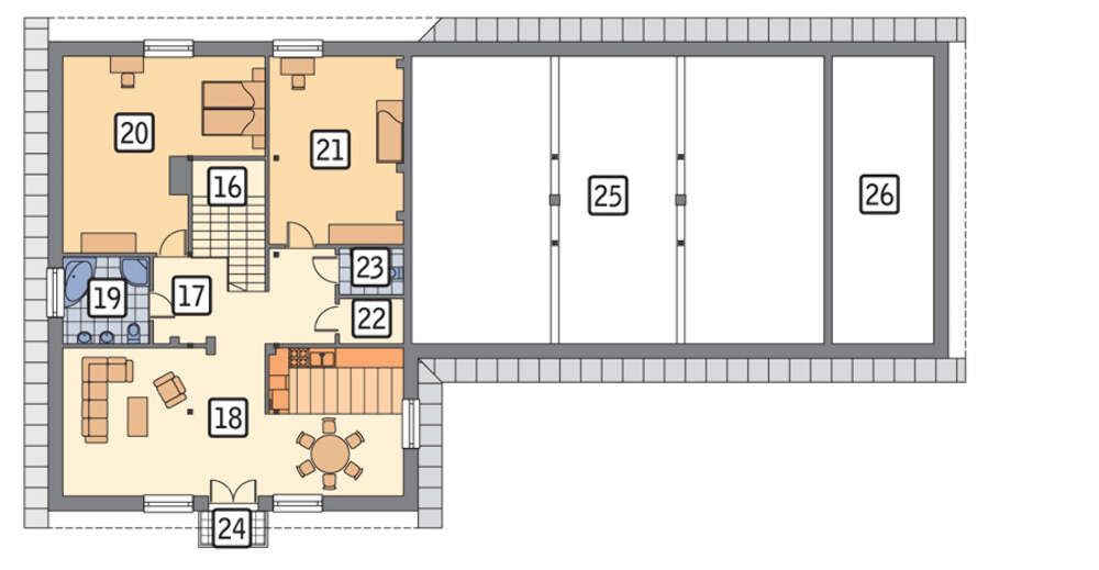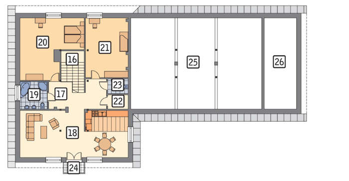 Проект содержит три раздела – АрхитектурныйКонструктивный и Инженерный: водоснабжение, отопление, вентиляция, канализация, электроснабжение (приобретается за дополнительную плату) + Пояснительная записка.