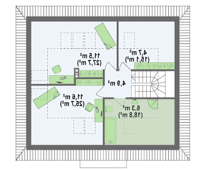 Проект содержит три раздела – Архитектурный, Конструктивный и Инженерный: водоснабжение, отопление, вентиляция, канализация, электроснабжение (приобретается за дополнительную плату) + Пояснительная записка.