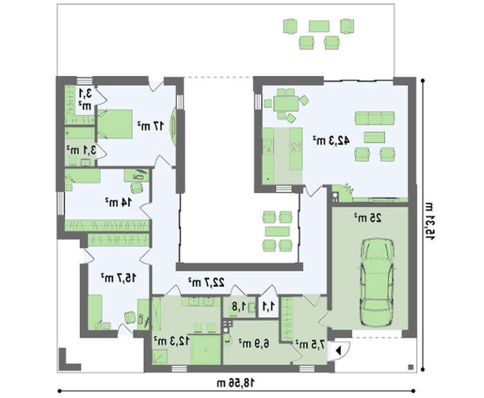 Проект содержит три раздела – Архитектурный, Конструктивный и Инженерный: водоснабжение, отопление, вентиляция, канализация, электроснабжение (приобретается за дополнительную плату) + Пояснительная записка.