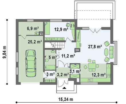 Высота дома:7.34 м