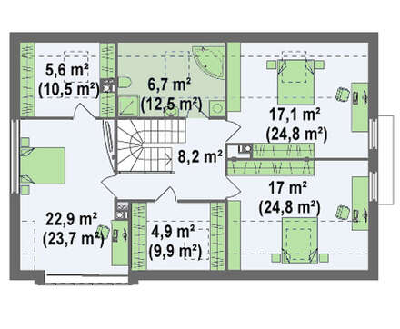 Проект содержит три раздела – АрхитектурныйКонструктивный и Инженерный: водоснабжение, отопление, вентиляция, канализация, электроснабжение (приобретается за дополнительную плату) + Пояснительная записка.