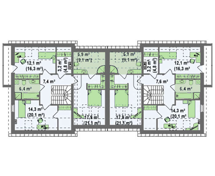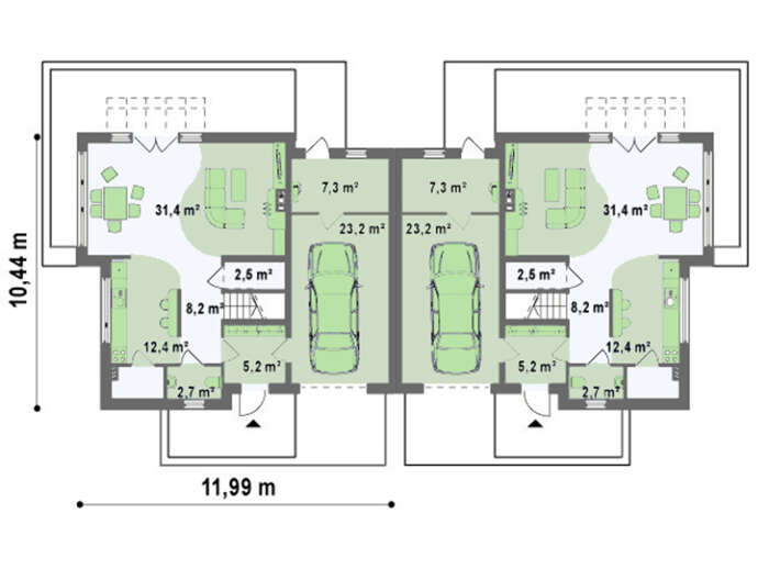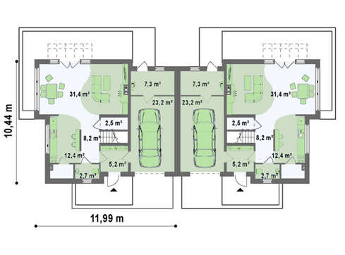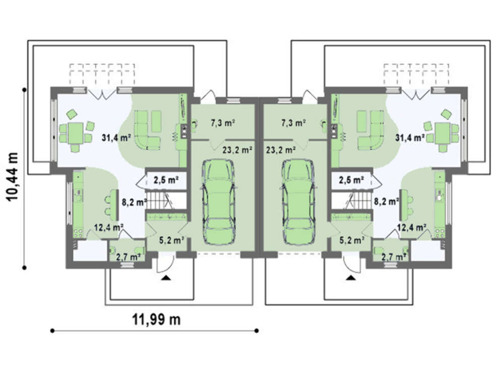 Проект содержит три раздела – Архитектурный, Конструктивный и Инженерный: водоснабжение, отопление, вентиляция, канализация, электроснабжение (приобретается за дополнительную плату) + Пояснительная записка.
