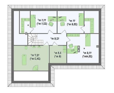 Вся мансарда отведена под ночную зону для детей и родителей. Три спальни, просторная ванная комната и отдельная прачечная образуют комфортное и удобное для жизни пространство.
