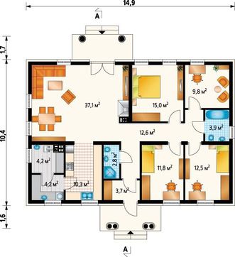 • 4M3484b Уютный загородный коттедж с четырехскатной кровлей