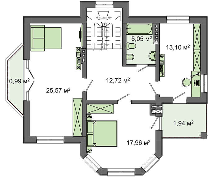 • 4M649 Величавый особняк с эркерами и цокольным этажом общей площадью 321 кв. м, жилой 121 кв. м