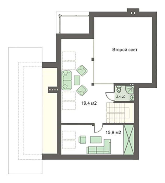 Проект содержит три раздела – Архитектурный, Конструктивный и Инженерный: водоснабжение, отопление, вентиляция, канализация, электроснабжение (приобретается за дополнительную плату) + Пояснительная записка.