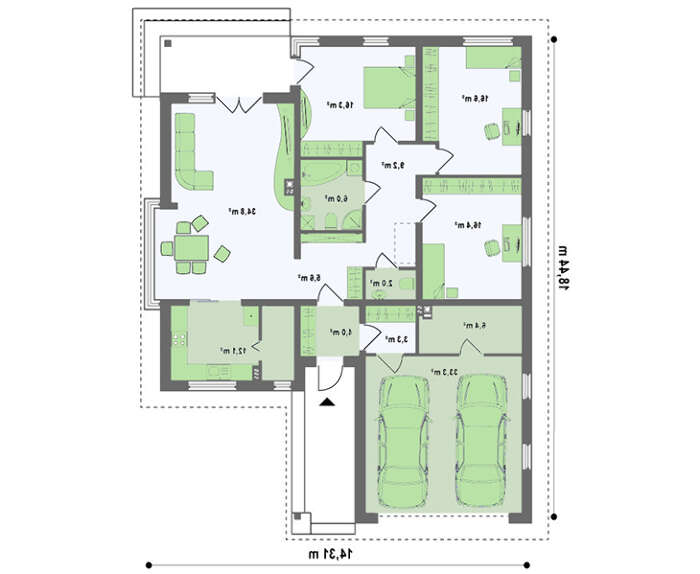 • 4M719 Одноэтажный дом с гаражом на две машины и панорамным окном в гостиной