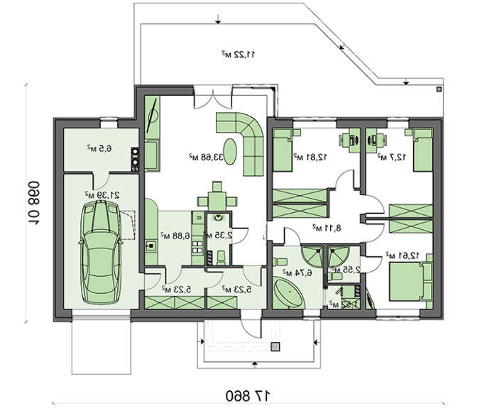• 4M090a Версия проекта одноэтажного коттеджа 4M090 с перепланировкой