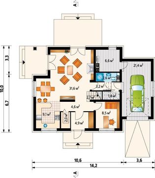 Проект содержит три раздела – Архитектурный, Конструктивный и Инженерный: водоснабжение, отопление, вентиляция, канализация, электроснабжение (приобретается за дополнительную плату) + Пояснительная записка.