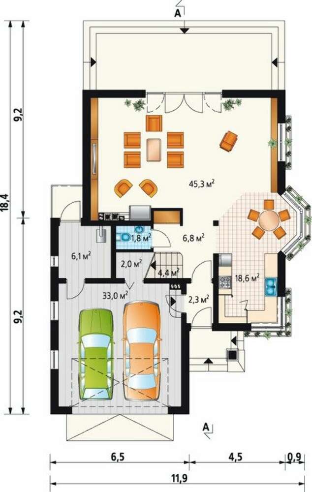 Яркий проект загородного дома с гаражом на 2е машины