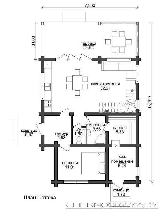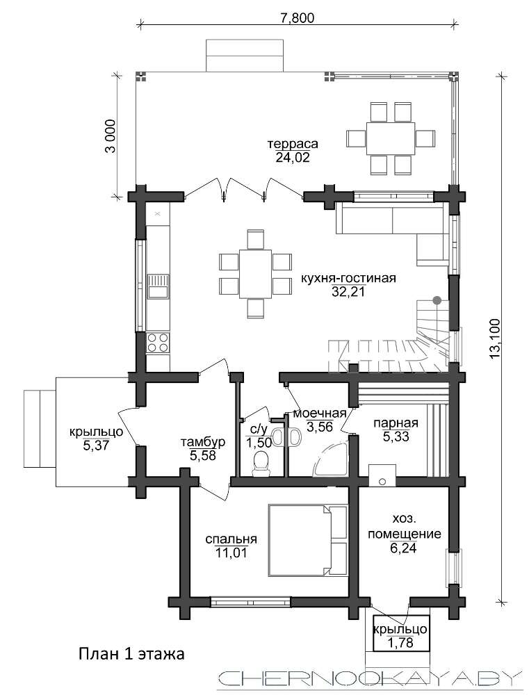 Проект содержит три раздела – Архитектурный, Конструктивный и Инженерный: водоснабжение, отопление, вентиляция, канализация, электроснабжение (приобретается за дополнительную плату) + Пояснительная записка.