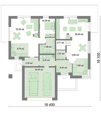Проект содержит три раздела – Архитектурный, Конструктивный и Инженерный: водоснабжение, отопление, вентиляция, канализация, электроснабжение (приобретается за дополнительную плату) + Пояснительная записка.