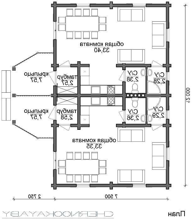 Проект содержит три раздела – Архитектурный, Конструктивный и Инженерный: водоснабжение, отопление, вентиляция, канализация, электроснабжение (приобретается за дополнительную плату) + Пояснительная записка.