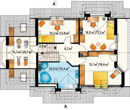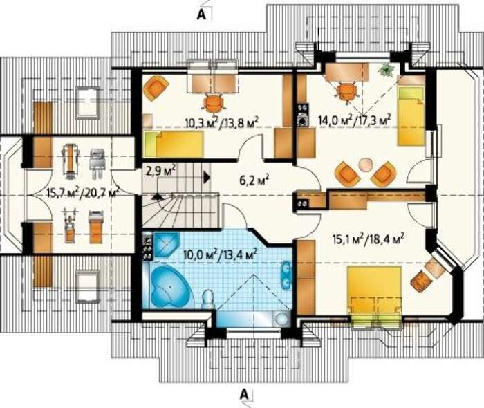 Запоминающийся проект особняка с мансардой площадью до 200 m²