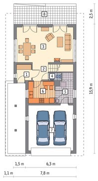 Проект содержит три раздела – АрхитектурныйКонструктивный и Инженерный: водоснабжение, отопление, вентиляция, канализация, электроснабжение (приобретается за дополнительную плату) + Пояснительная записка.
