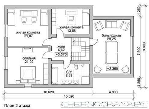 Проект содержит три раздела – АрхитектурныйКонструктивный и Инженерный: водоснабжение, отопление, вентиляция, канализация, электроснабжение (приобретается за дополнительную плату) + Пояснительная записка.