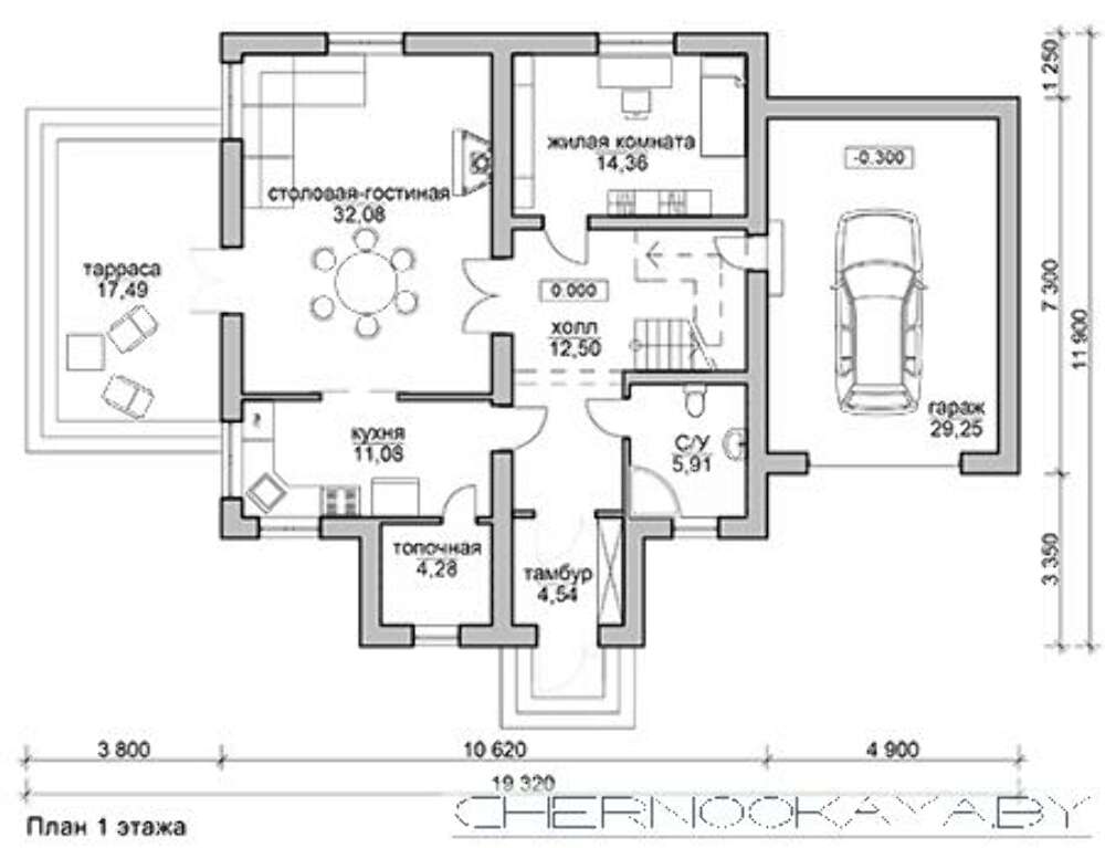 Проект содержит три раздела – АрхитектурныйКонструктивный и Инженерный: водоснабжение, отопление, вентиляция, канализация, электроснабжение (приобретается за дополнительную плату) + Пояснительная записка.